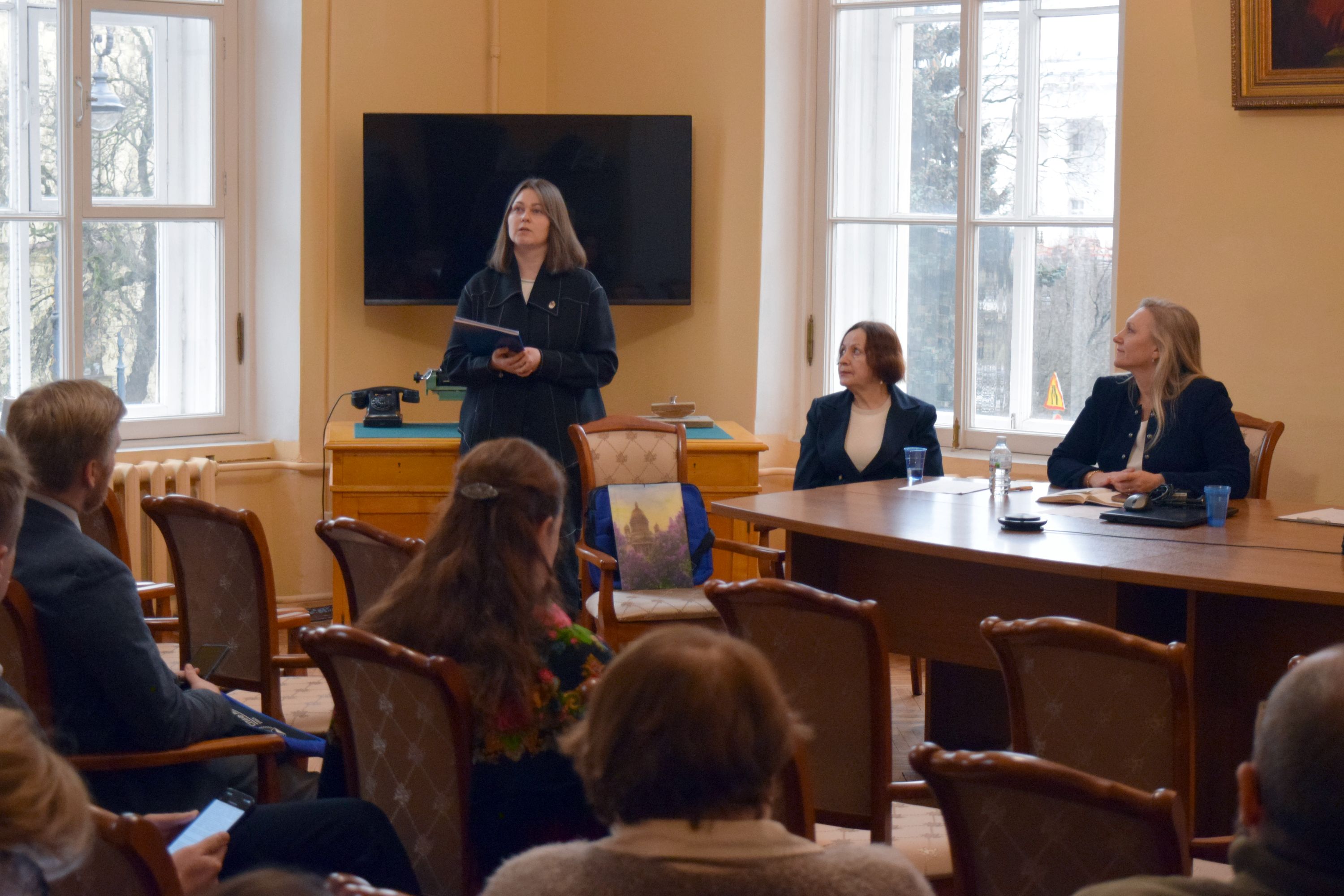 9 декабря 2025 г. На заседании Ученого совета СПбФ ИИЕТ РАН научному сотруднику Сектора истории Академии наук и научных учреждений, выпускнице аспирантуры СПбФ ИИЕТ РАН 2022 г., Алине Эдуардовне Меркуловой был вручен диплом кандидата исторических наук