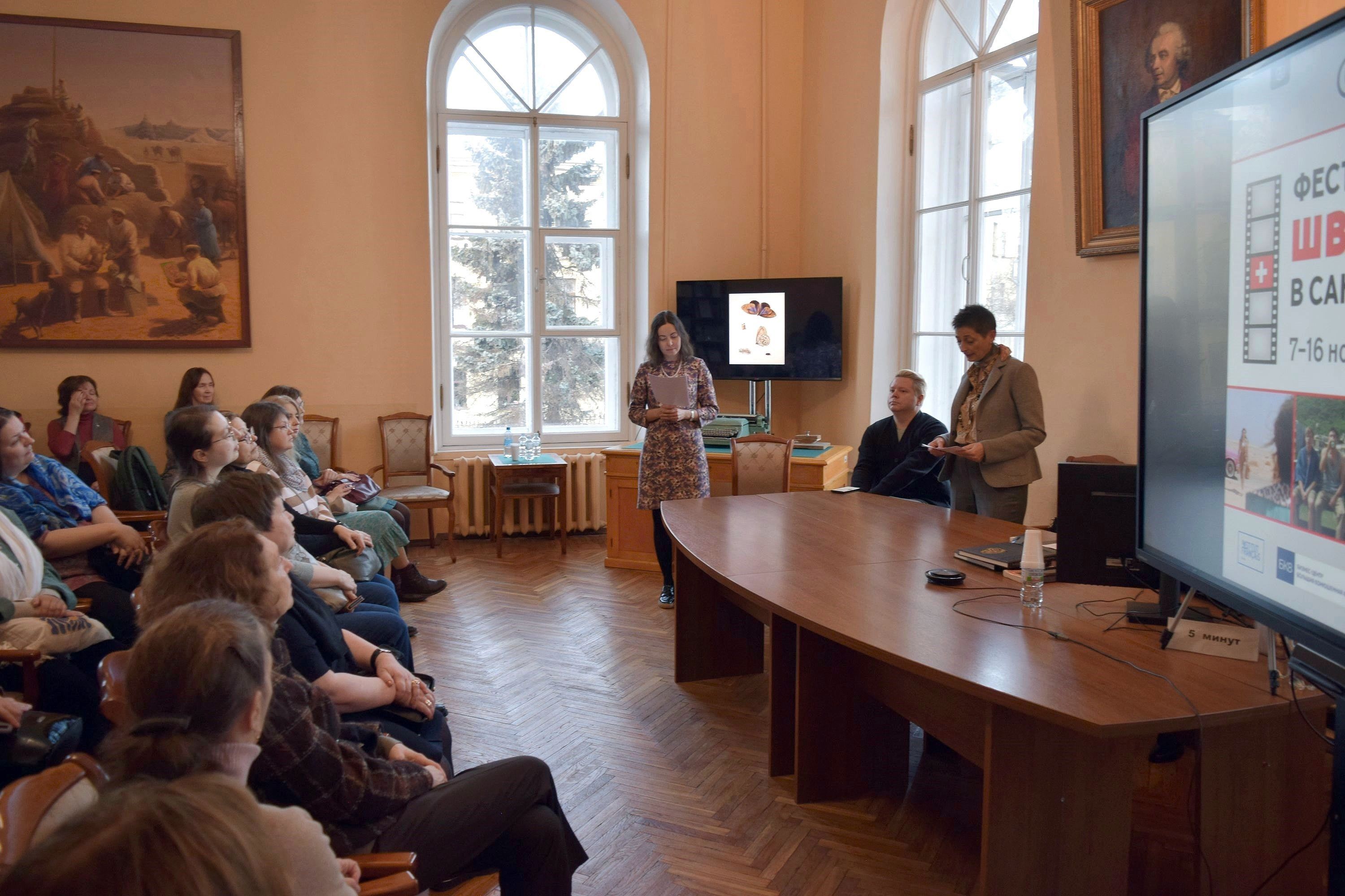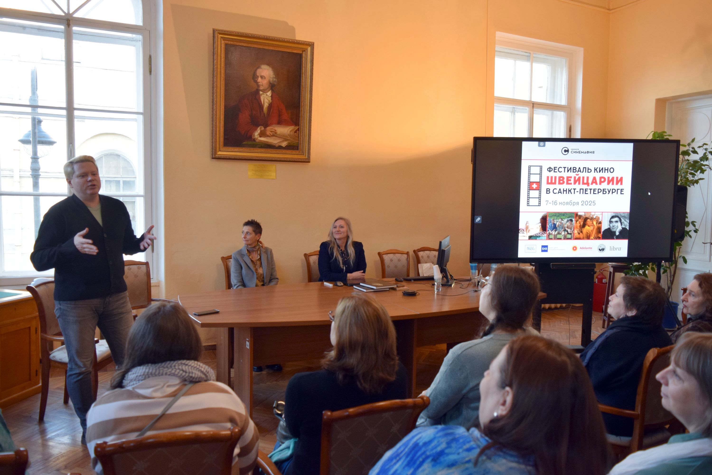 Фотоотчет о научно-популярном мероприятии «ШВЕЙЦАРЦЫ В ИСТОРИИ РОССИЙСКОЙ АКАДЕМИИ НАУК» (в рамках XI Фестиваля кино Швейцарии в Санкт-Петербурге, 16 ноября 2024)