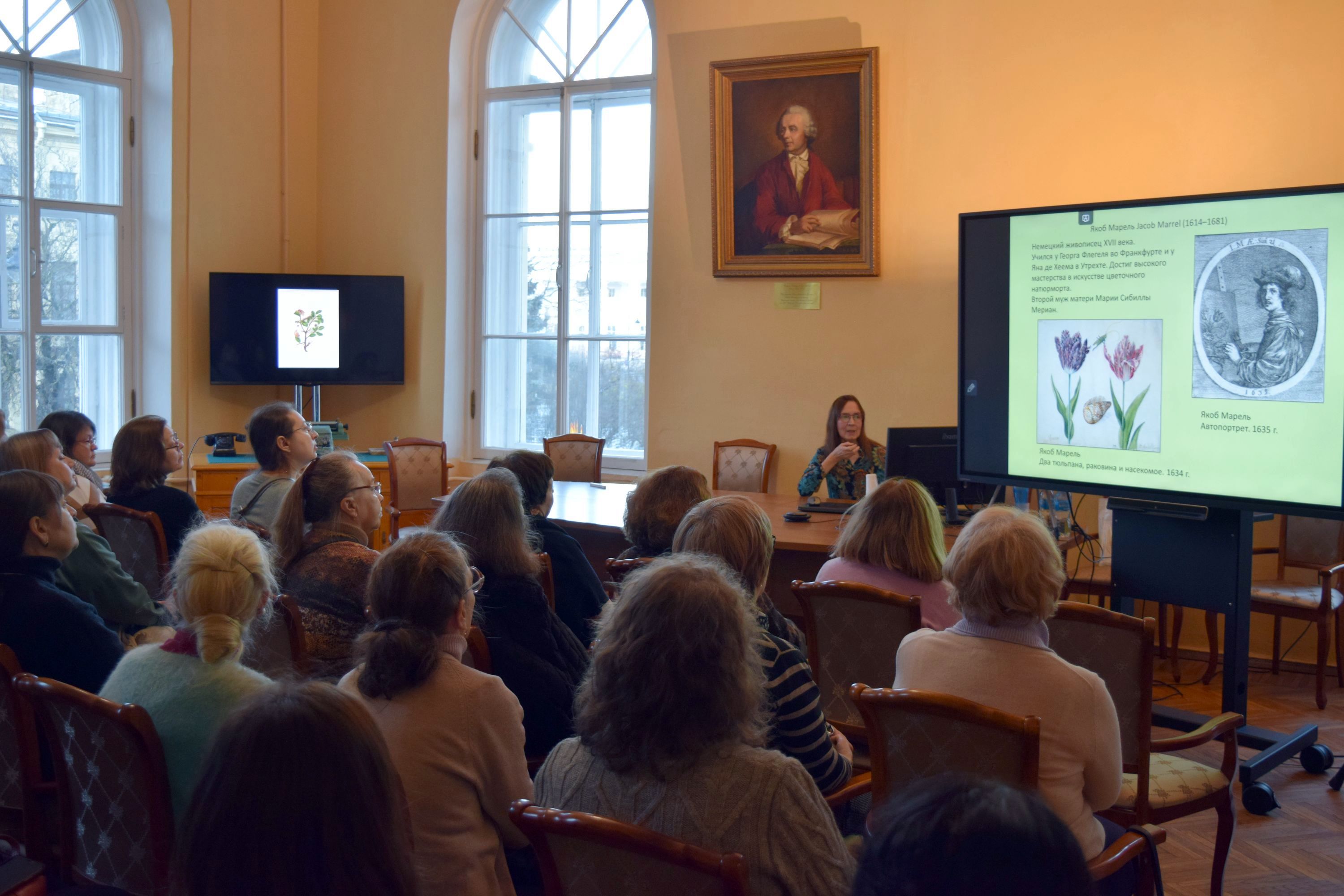 Дунаева Юлия Александровна, научный сотрудник Отдела БАН при Зоологическом институте РАН, представила лекцию о творческом наследии Марии Сибиллы Мериан и её дочери Доротеи.